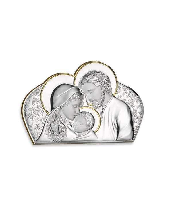 Sacra Famiglia Pvd Argento e Oro con Retro in Legno