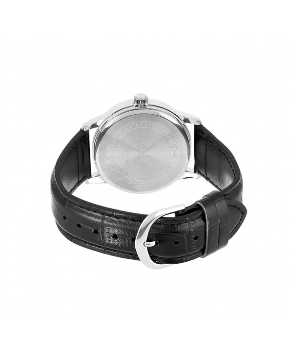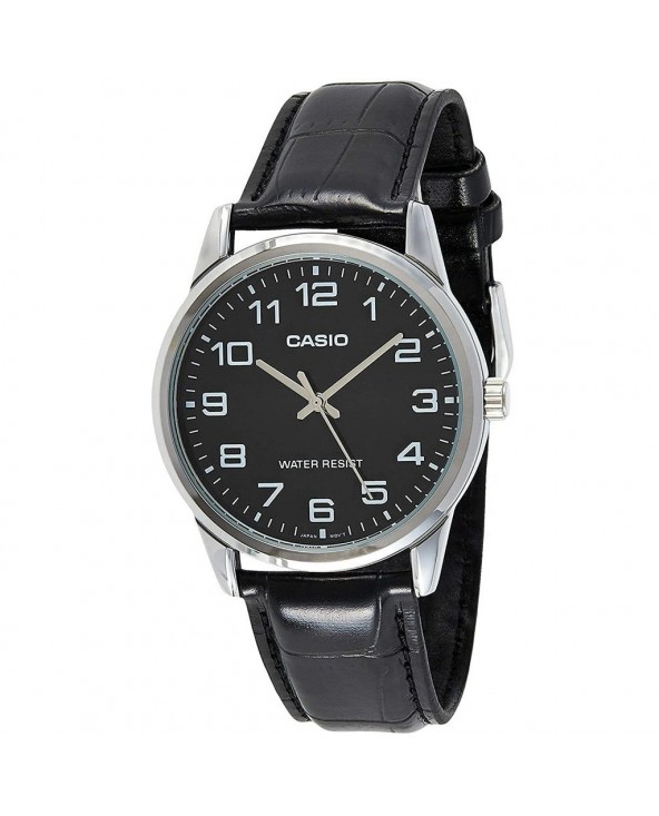 Orologio CASIO analogico con quadrante nero, cassa 37 mm. e cinta pelle nera. Referenza: MTP-V002L-1BUDF