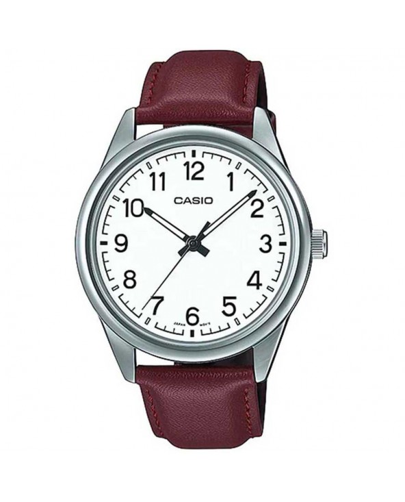 Orologio CASIO analogico con quadrante bianco, cassa 40mm. e cinta pelle marrone. Referenza: MTP-V005L-7B4UDF